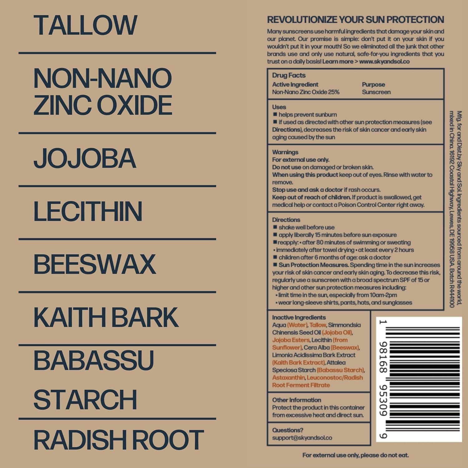 Nourishing Animal-Based Skincare with Beef Tallow: Embrace the healing power of beef tallow, which nourishes and protects your skin. Sky and Sol offers effective sun protection while promoting skin health and vitality, making it the perfect everything cream for your skin.