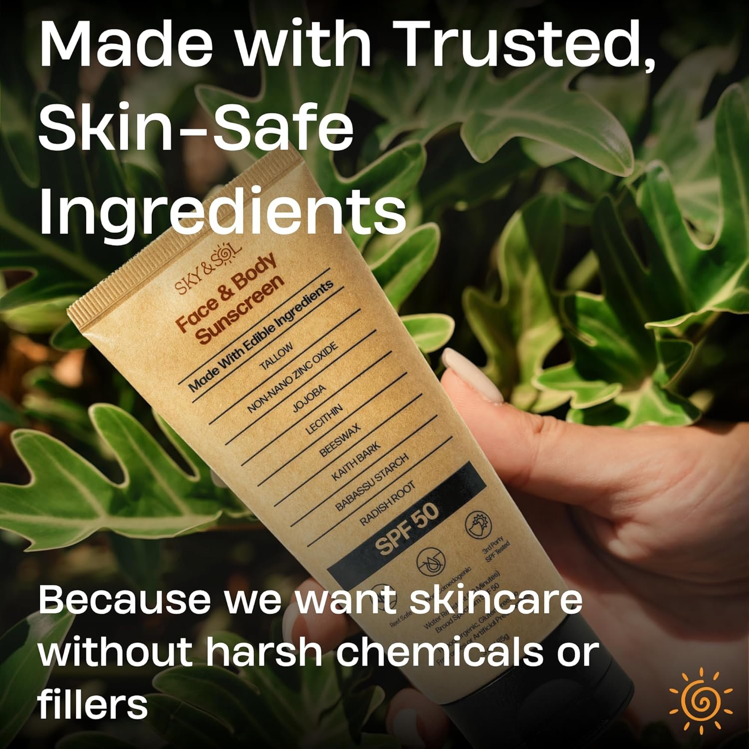 Safest Non-Toxic Natural Sunscreen with Edible-Grade Ingredients: Our SPF 50 mineral sunscreen is made with edible-grade organic tallow and non-nano zinc oxide. It’s free from highly processed seed oils, fragrances, preservatives, silicones, and chemical UV filters like Octinoxate & Oxybenzone.