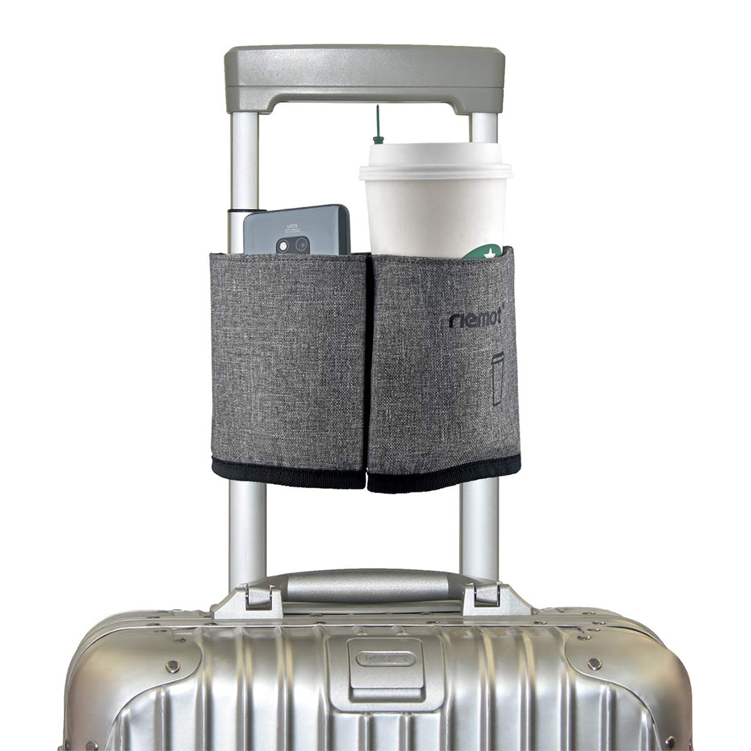 riemot Luggage Cup Holder for Suitcase: Free Your Hands, Go Travel! Traveling can be a drag, and you don’t usually have a free hand to hold a drink especially with kids. But with this suitcase cup holder, you can hold two drinks now.