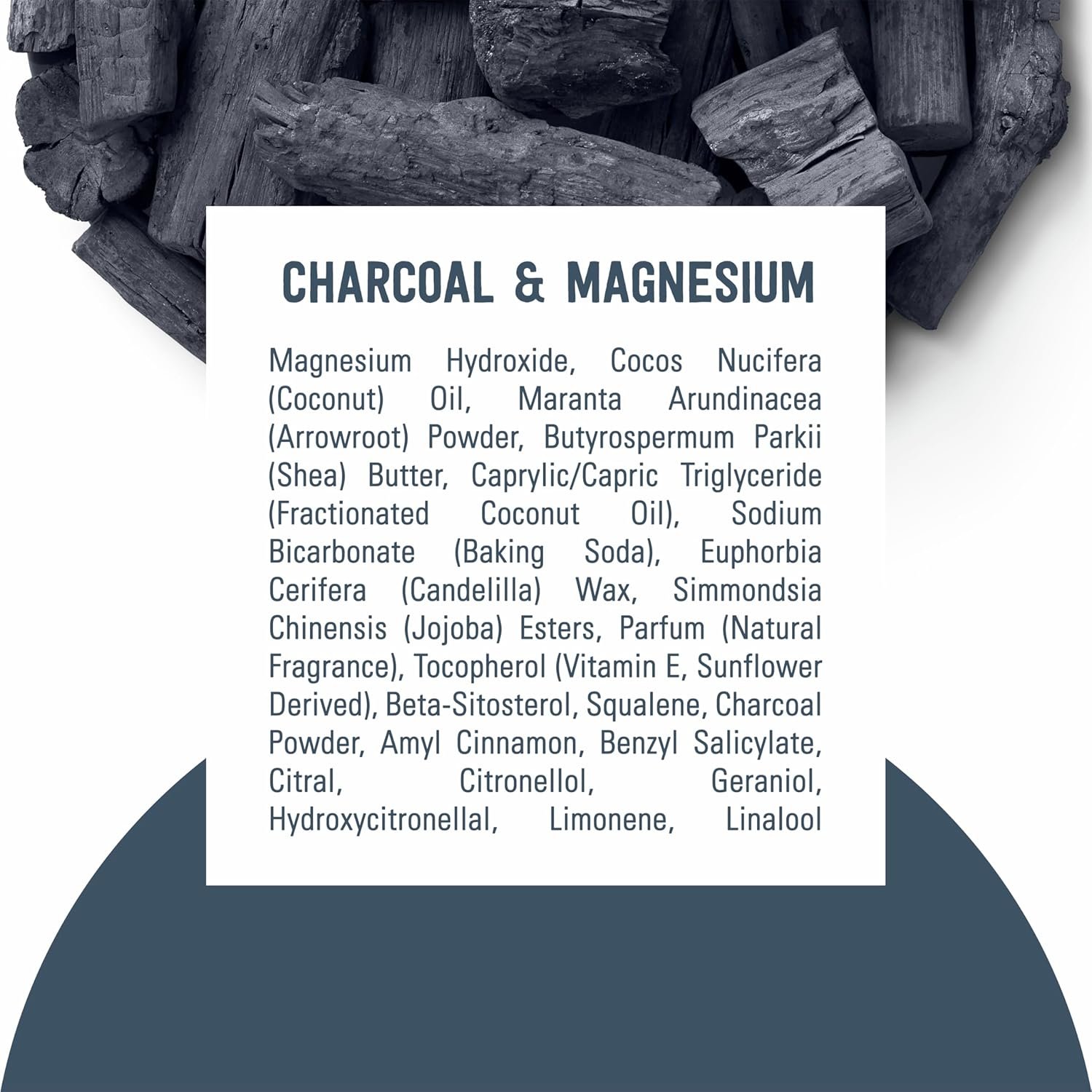Natural Origin Ingredients – Made with essential oils, our Charcoal & Magnesium Deo features a crisp, earthy scent reminiscent of freshly fallen rain.